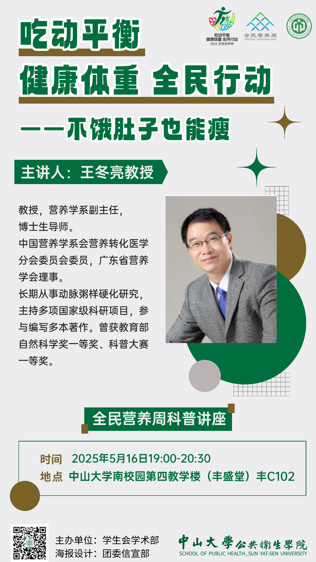 我院营养系杨丽丽教授为同学们带来营养知识专题讲座——《合理膳食 营养惠万家》。