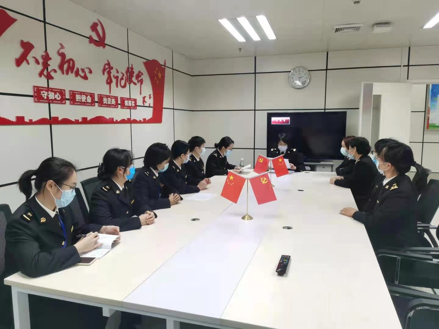 针对支部人员架构大、构成复杂,且人员轮换频繁等管理难点,聚焦中心工作,立足监管实际、科学合理规划,总结“一党员一岗组”分组工作办法,创新实施“分区管理、分类预警、多岗协作”战疫责任制,推行“党员小组+”工作模式。同时,每个党员责任区均设有“党员示范岗”,围绕重点环节、重点岗位组建党员突击队,构筑了“自上而下、四级联动”的立体“防护网”,打通疫情防控“神经末梢”。