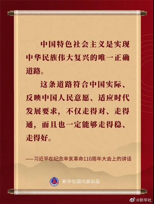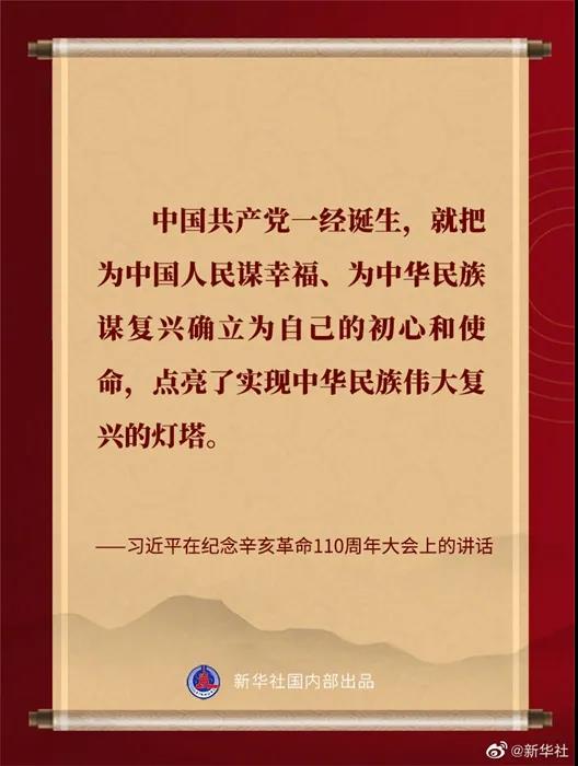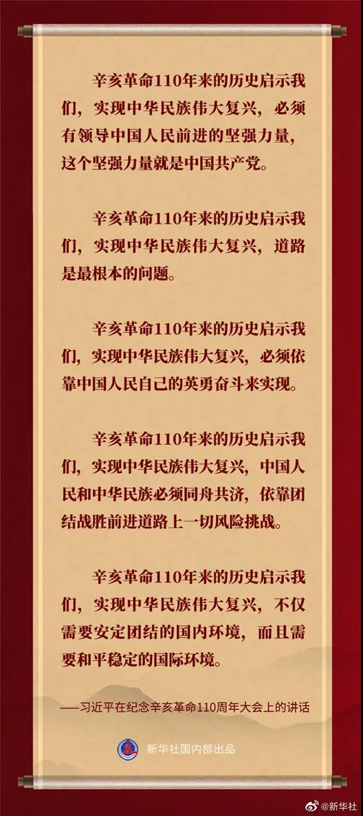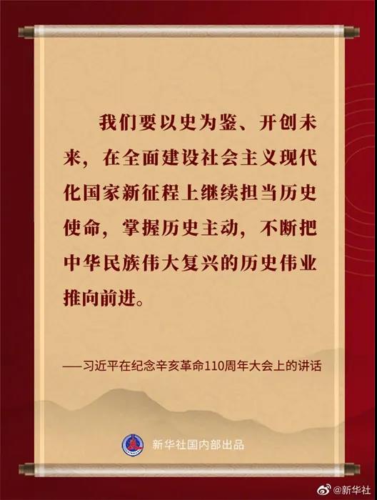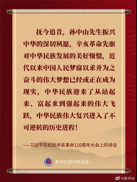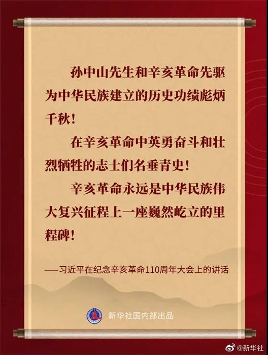 习近平在纪念辛亥革命110周年大会上的讲话金句