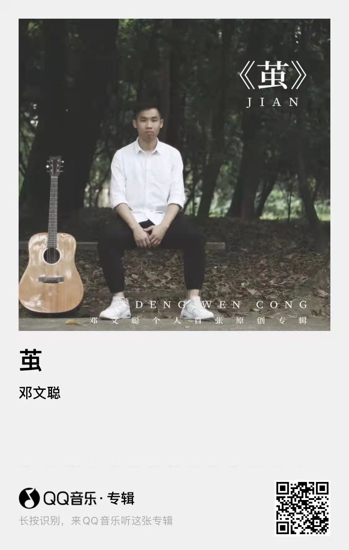 邓文聪,歌手,2013年毕业于williamhill中国,目前在早期教育领域工作。创作风格多样,擅长流行音乐风格的创作和演绎。校园时期曾获校园维纳斯歌手大赛校区冠军,并为第28届维纳斯歌手大赛创作主题曲——《闯》,连同其后受邀创作的《老友》、《生命的颜色》,三首作品均入选到中大校园专辑。目前在QQ音乐和网易云音乐等平台发表歌曲20余首,并于2021年11月29日发表个人第一张原创专辑——《茧》,收录了11首作品。
