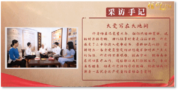 积极承办 “信仰对话”采访老党员许发茂教授和凌文华教授活动、红色诗文诵读活动、读懂中国视频征文活动,相关视频获评教育部读懂中国优秀视频奖。