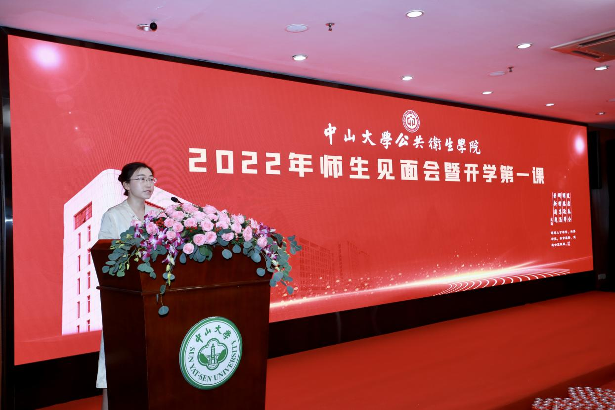 2021级研究生老生代表王胜浩同学结合五次抗疫志愿经历和科研锻炼经验,讲述了他一年研究生生活中的所思所感,鼓舞研究生新生们要脚踏实地,练就扎实本领;要勇于尝试,坚持不懈勤钻研;更要勇担时代使命,立志做人类健康的守门人。接下来是研究生新生代表,2022级硕士生张茂林同学发言。他表达了再次成为中大公卫学子的荣幸与自豪之情,他倡议同学们注重勤学实干,多学习、多思考、多行动,在科研求索的道路上耐得住寂寞,吃得了苦头,在成为“引领未来的高水平公共卫生人才”的道路上砥砺前行,奋发作为。