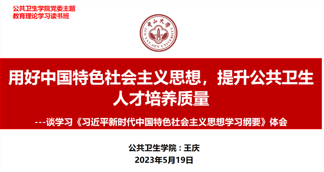 学院党委委员、副院长王庆同志讲了题为《用好中国特色社会主义思想,提升公共卫生人才培养质量》的专题党课,重点领学《习近平新时代中国特色社会主义思想学习纲要》等主题教育指定教材内容。他表示,要深刻领悟“两个确立”,坚决做到“两个维护”;坚持改革,创新新时期公卫人才培养模式;坚持新时期“四个融合”的公卫人才培养模式,即医防融合、理论实践融合、教育流程融合和专业通识融合;培养能解决病原学鉴定、疫情形势研判和传播规律研究、现场流行病学调查、实验室检测等实际问题的人才。