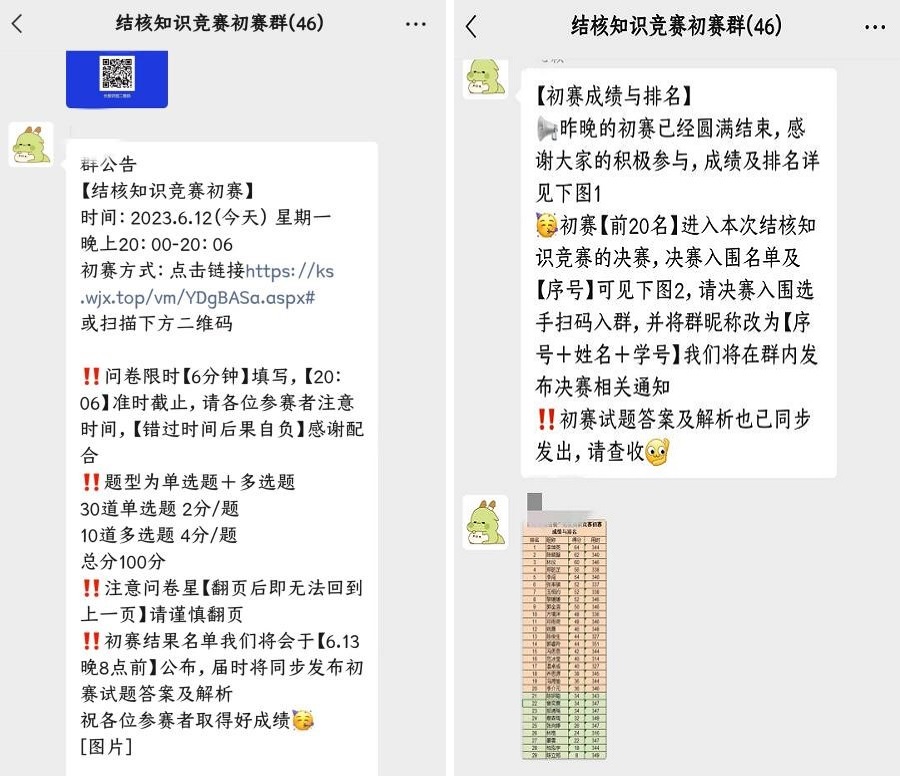 6月12日,无疾先锋志愿宣讲团在初赛群以问卷星答题形式,开展知识竞赛的初赛选拔。初赛共有29名同学填写问卷星进行答题,经过激烈的线上选拔,最终确定了20名同学进入决赛。