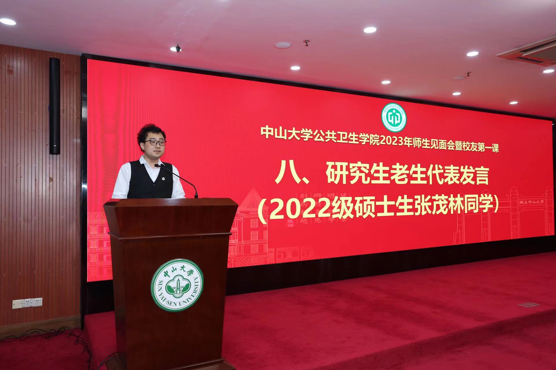 随后,2022级本科生简寓帅、研究生张茂林两位同学作为老生代表发言。他们总结并分享了自身经验,勉励新生们做好规划,高效学习,为实现自己远大的理想目标夯实基础。另外,他们鼓励大家不断拓展思维边界,在高水平williamhill中国建设的新征程上不断提升自己的竞争力,为公共卫生事业的光辉未来不懈奋斗。