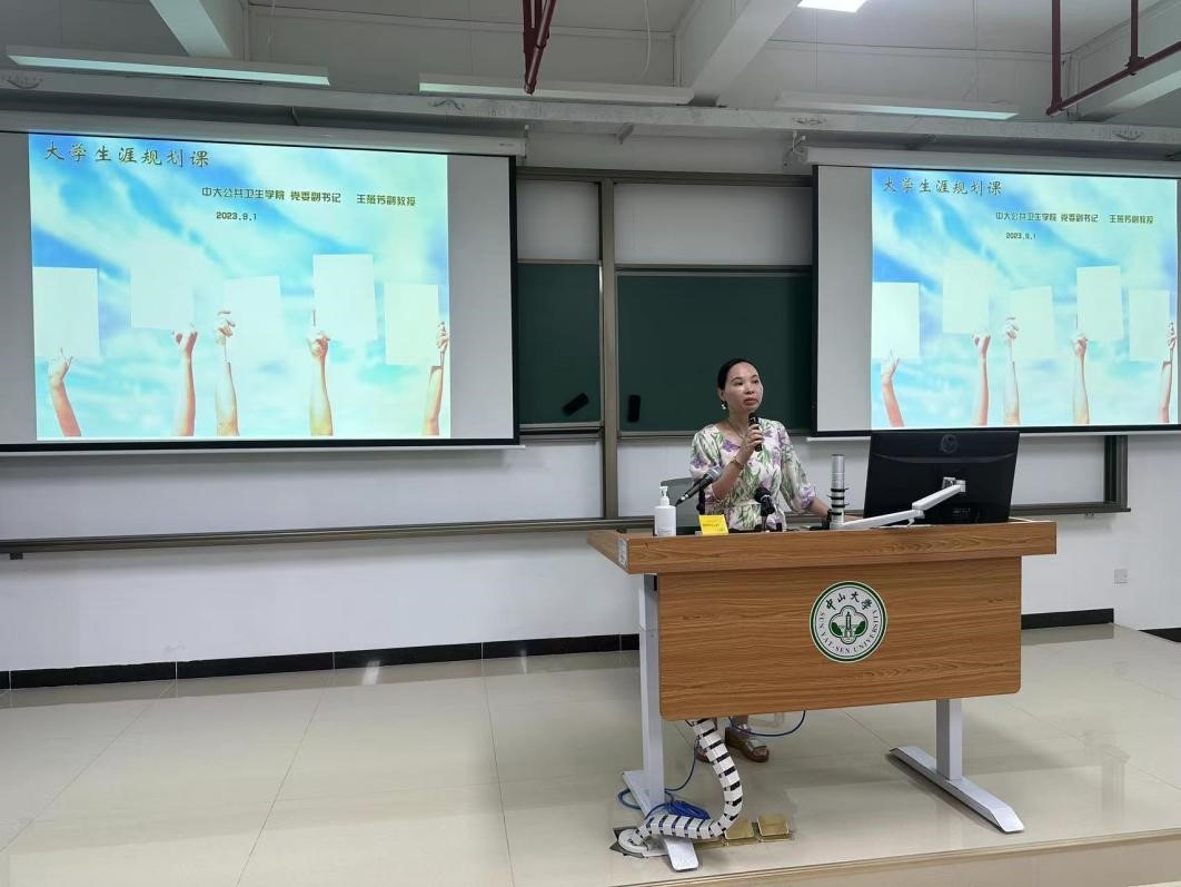 接着,王燕芳副书记为新生讲授《大学生涯规划课》,她从为什么读大学、大学读什么、如何读大学几个维度深入浅出地指引同学们做好大学学习生活规划,同学们要自律、自信、自强,不懈怠,每天进步一点点,做德智体美劳兼备的公卫人才。