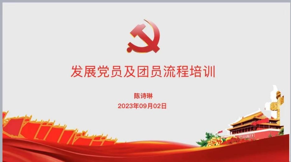 9月2日上午,学院本科生党支部副书记陈诗琳同学为新生开展了入党入团教育。在这堂课中,同学们认识了优秀的中共党员们,思考为什么要入党入团,了解了中共党员及共青团员的申请和培养流程。课后,同学们纷纷撰写入党申请书或入团申请书,积极向党组织和团组织靠拢,赓续中大红色基因。