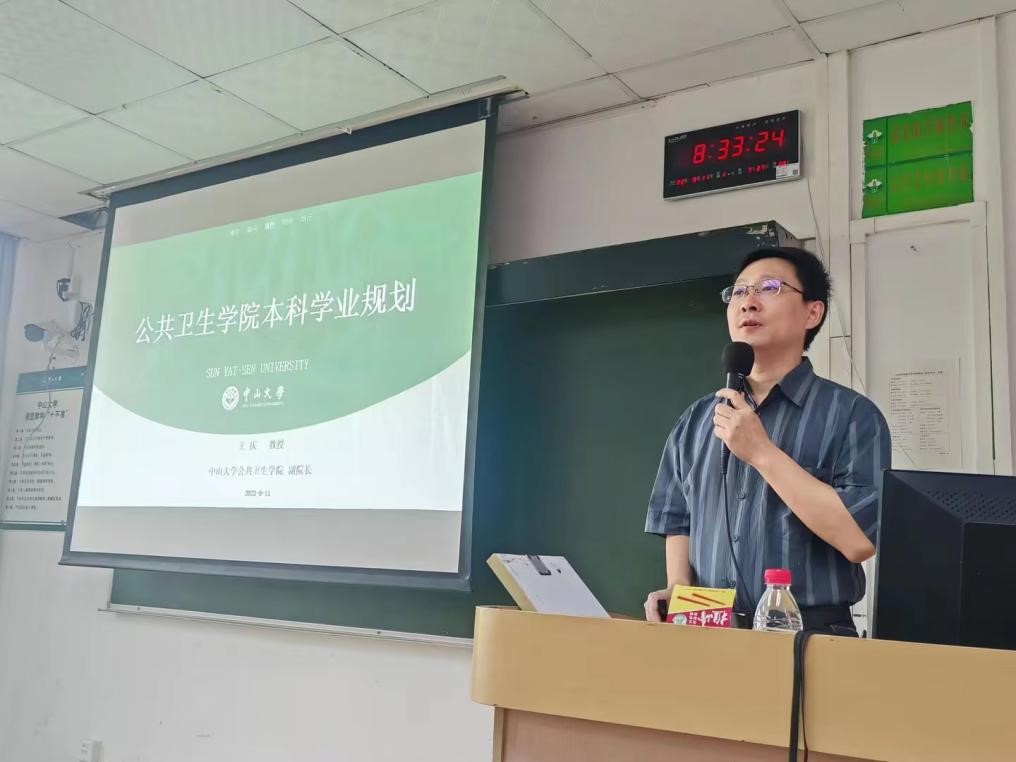 9月1日上午,学院2023级本科生新生开学第一课如期而至。课上,学院党委范瑞泉书记为新生开展《梦想从学习开始,圆梦需要奋斗和奉献》专题讲座,他介绍了中大悠久的红色历史、公卫事业的地位与作用、党和国家对于公卫事业的殷切期望以及公卫学子的大学生活。范书记指出,新冠肺炎疫情以来,公共卫生事业正逐渐走向舞台中央,被越来越多的人所看见、重视。作为公卫人,我们更应该毫不犹豫听党话、跟党走,为建立和完善新时代公共卫生体系贡献出自己的一份力量。