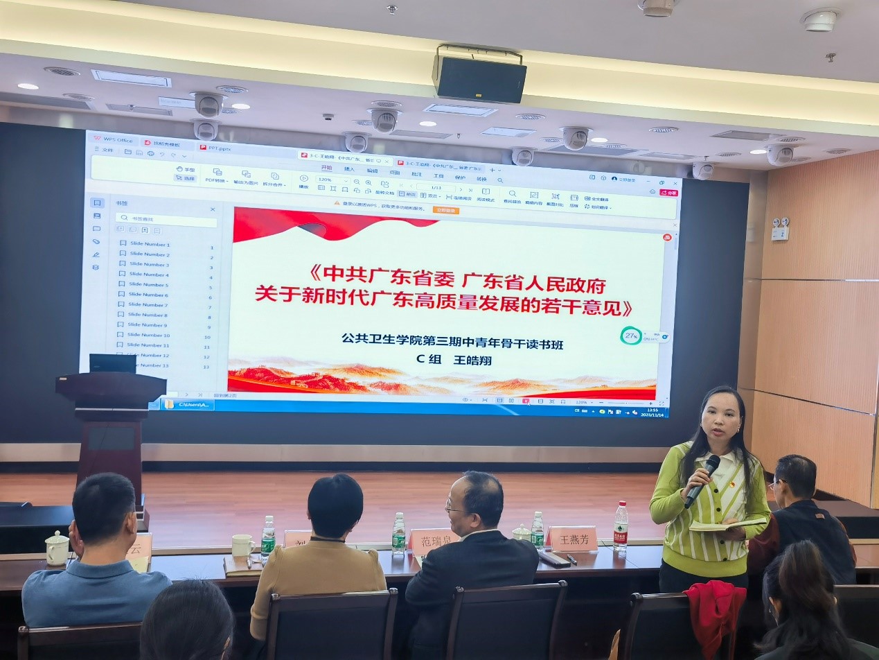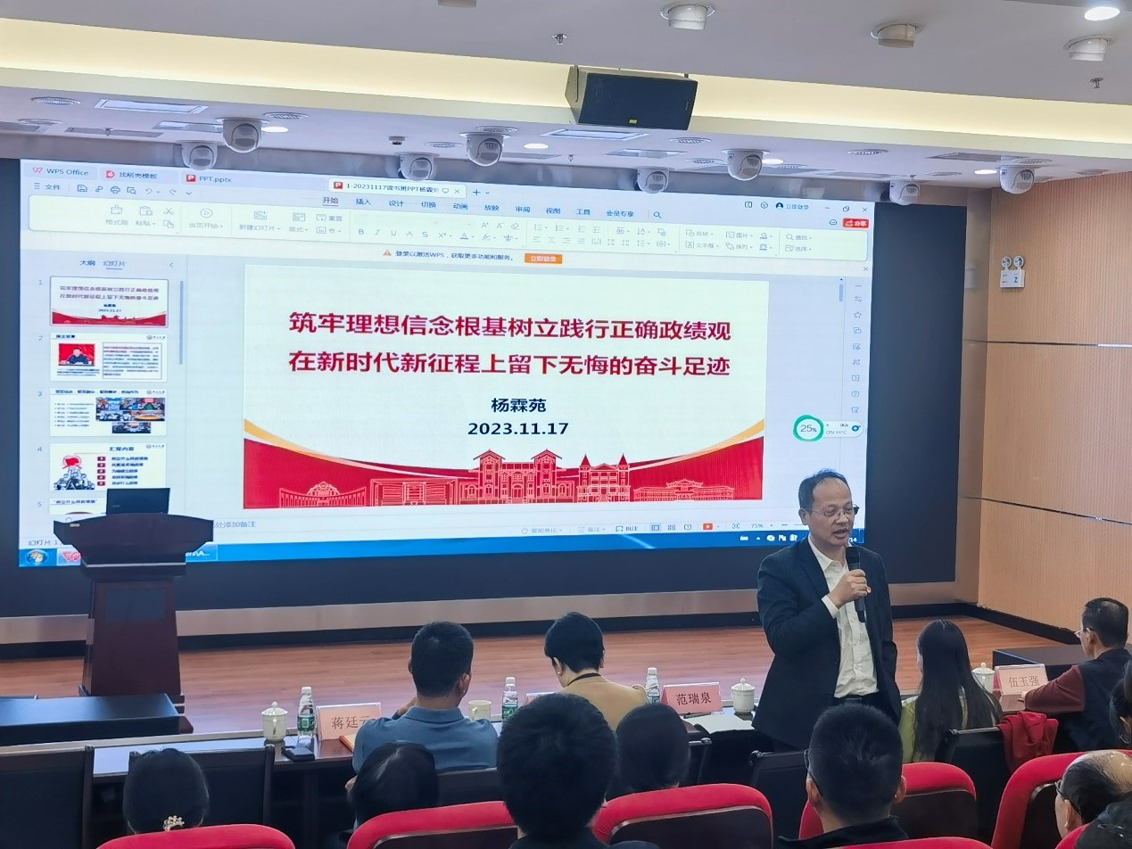 随后,王皓翔副教授分享了以《中共广东省委 广东省人民政府关于新时代广东高质量发展的若干意见》为题的报告。他强调了绿美广东建设对于新时代广东高质量发展的重要性和必要性。通过学习该文件,高校老师可以更加深刻地认识到自身在推动绿美广东建设中的责任和使命,为培养更多具有生态文明素养的高素质人才做出贡献。