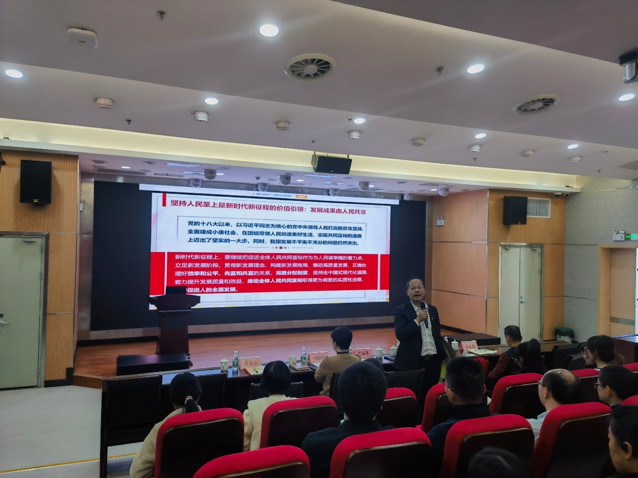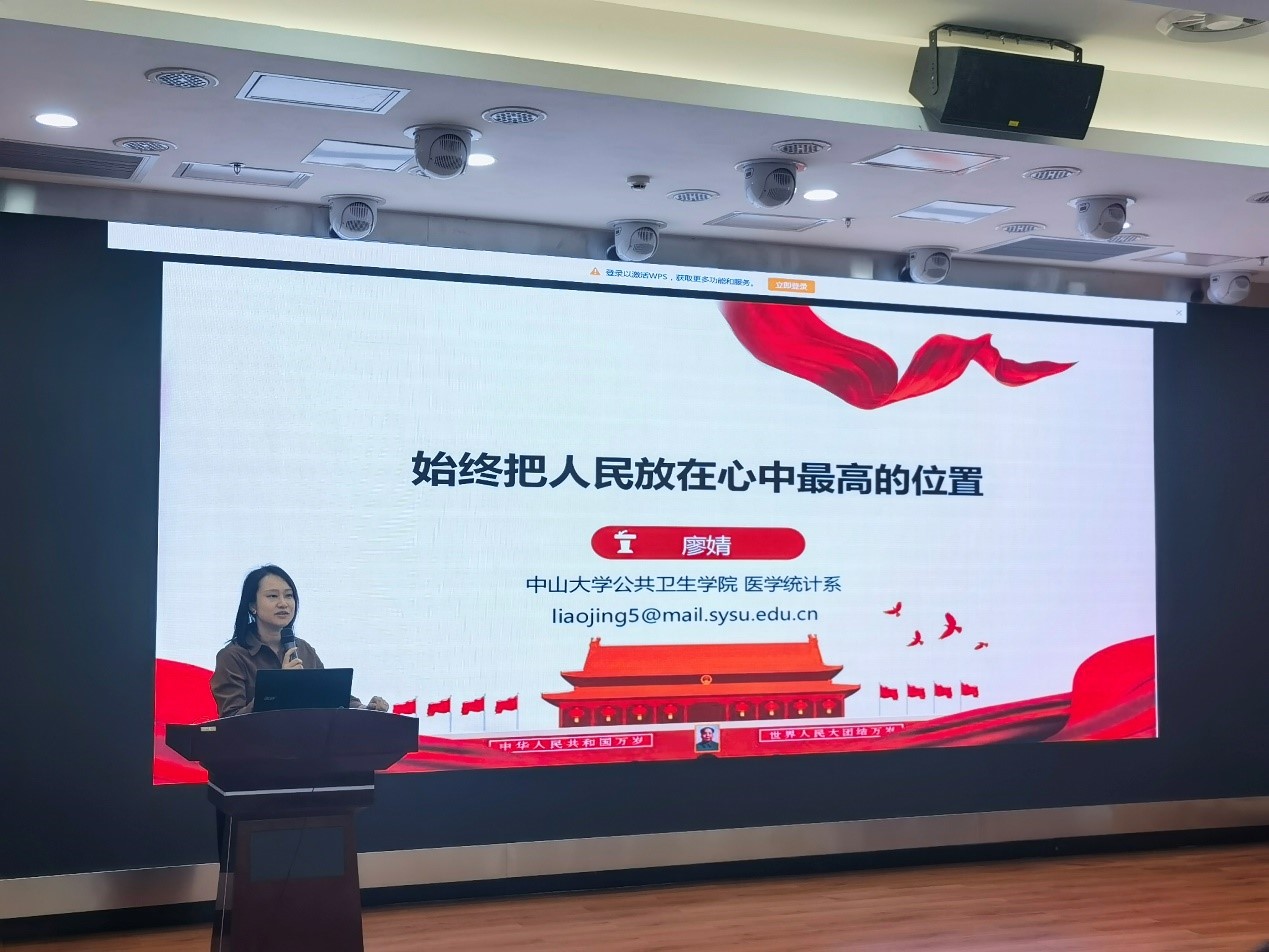 接下来,廖婧副教授做了以《始终把人民放在心中最高的位置》为题的分享。她强调了坚持“人民至上”对于我们不忘初心、牢记使命,奋进新时代、建功新时代的重要性。