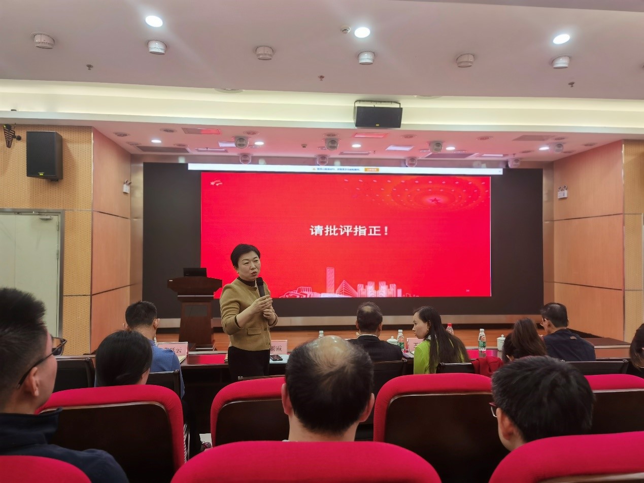王皓翔副教授分享结束后,王燕芳副书记进行了详细点评。她表示这个报告与我们息息相关,我们学习和生活在广东,是广东发展的见证者和建设者。我们应该注重提高科研质量,推动科技创新和成果转化,为经济社会发展提供强有力的支撑。