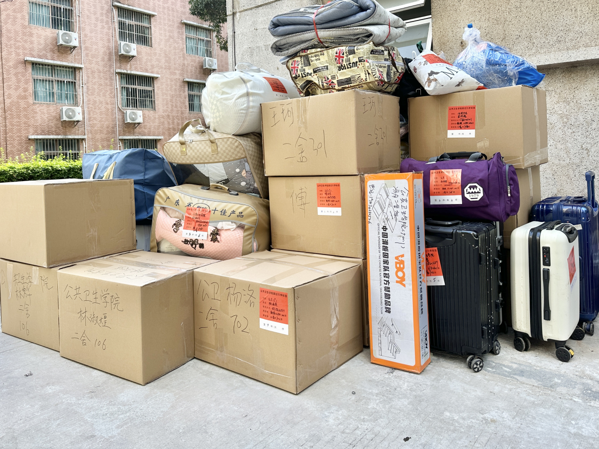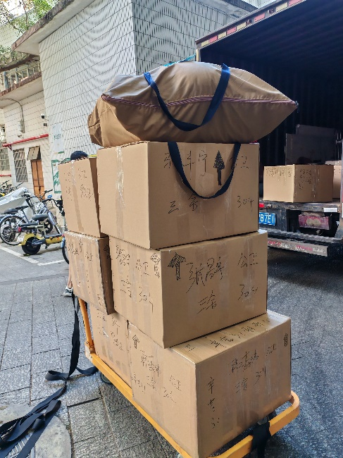 为了让同学们打包整理行李更加方便,我院发布问卷了解同学们的切实需求,根据问卷收集的行李数量统一购置了搬家纸箱和行李贴,并提前为同学们发放了充足的马克笔、打包绳和胶带用以整理搬迁物资。