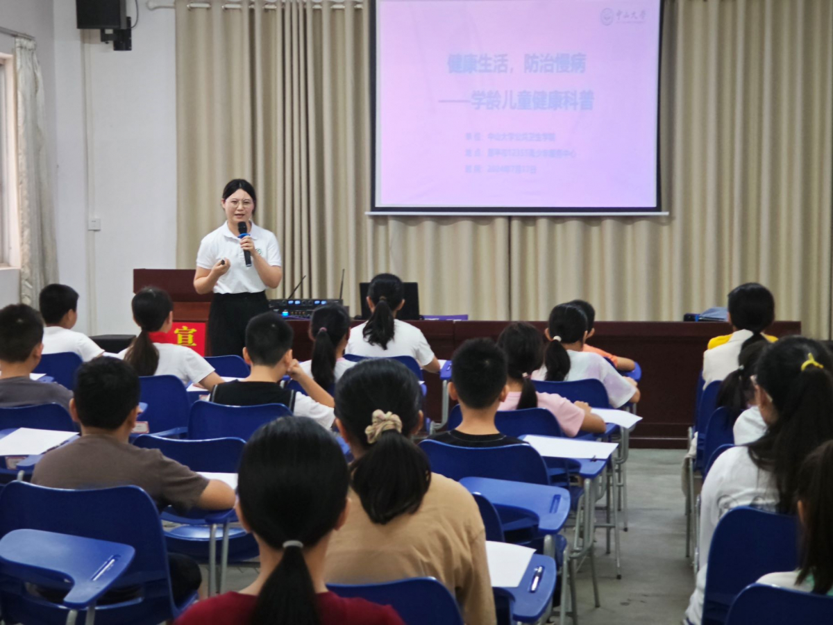 为全面推进“百县千镇万村高质量发展工程”走深走实,提高居民健康素养水平,做好健康管理、健康维护等预防工作,让群众成为维护健康的主人,williamhill中国广东省百千万工程恩平突击队于7月15-17日在恩平市开展了一系列面向基层全人群的健康科普活动。突击队由学院党委副书记王燕芳、团委副书记蓝丹红和卫生管理学系副教授张慧老师担任指导老师,由本科生党支部学生代表与妇幼卫生学系师生党支部研究生代表组成队员。活动以“预防慢性病,健康我先行”为主题,包含营养与心理健康主题游园会、学龄儿童健康生活方式、中青年职业健康及银发族常见慢性病防治四大专题科普活动。