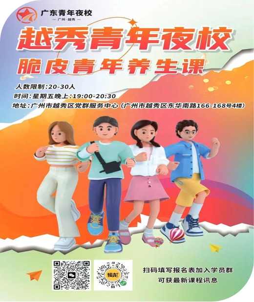 1月伊始,越秀青年夜校“脆皮青年养生局”持续开展。研究生各团支部于2023年12月1日-2024年1月26日期间每周五19:00-20:30在广州市越秀区党群服务中心开课,8次课累计服务青年近1500人次,针对当下青年十分关注的健康问题,与众多青年朋友共同探讨了健康生活的多维度话题。该系列的健康科普课程被南方都市报等多家媒体报道,授课主讲人还收到了来自团越秀区委的感谢信。