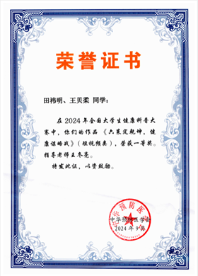 6月2日上午,第五届健康科普大赛-国赛推荐作品答辩评审会如期举行。此次评审会成功遴选出优秀作品参加国赛,同时也为学生提供了一个与专家深度交流、学习提升的宝贵平台,有效提升了学生的科普创作水平和创新思维能力。我们也在同年9月收到了好消息——田祎明、王贝柔同学的作品《六策定乾坤,健康谋略战》(指导老师:王冬亮)获评全国大学生健康科普大赛视频类一等奖,学院荣获“最佳组织单位”荣誉。