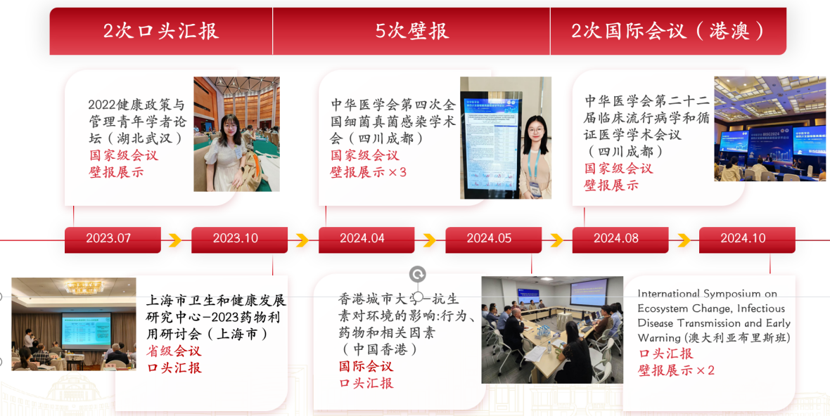 在两年多的时间里,得益于杨廉平导师的悉心指导与课题组伙伴们的携手同行,她先后在“Journal of Infection”“Antibiotics”“Journal of Hospital Infection”等国际期刊上共参与发表了8篇SCI论文,其中3篇作为第一作者,2篇作为第二作者。在不断学习积累的过程中,她逐渐触摸到了学术探究的深邃之美,领悟了学术探究的奥妙,对学术研究的过程产生了深深的热爱,那是一种沉浸于“心流”的体验。在科学与规律的广阔天地里,她得以无忧无虑地徜徉,在知识的浩瀚海洋中尽情翱翔。