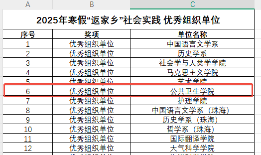 近日,共青团William希尔委员会公布了多项社会实践评选结果,williamhill中国师生在社会实践领域表现卓越,斩获多个集体与个人荣誉。在2025年寒假“返家乡”社会实践及2024-2025学年“大学生社区实践计划”评选中,学院凭借扎实的组织工作、创新的实践项目以及丰硕的成果,连续荣获“优秀组织单位”称号,多个团队及个人脱颖而出,充分彰显了公卫学子服务社会的青春风采与责任担当。