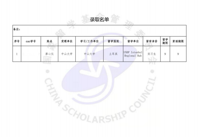 此次选拔属于国家留学基金委与国际组织合作项目,遴选程序严格,需经学院推荐、学校初审、专家评审、中方面试、国际组织面试与最终审核等多轮考核。廖心仪同学凭借扎实的专业能力、出色的外语水平与良好的跨文化沟通能力,历时近4个月的考核,最终成功获得录取。