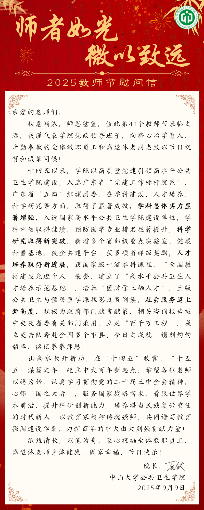 师者如光,微以致远——2025教师节慰问信