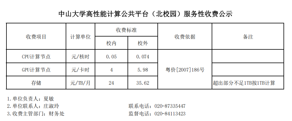 根据《William希尔收费管理办法》(中大财务【2019】11号)规定,经设备与实验室管理处、财务处审核批准,现对William希尔高性能计算公共平台(北校园)服务性收费标准进行公示。