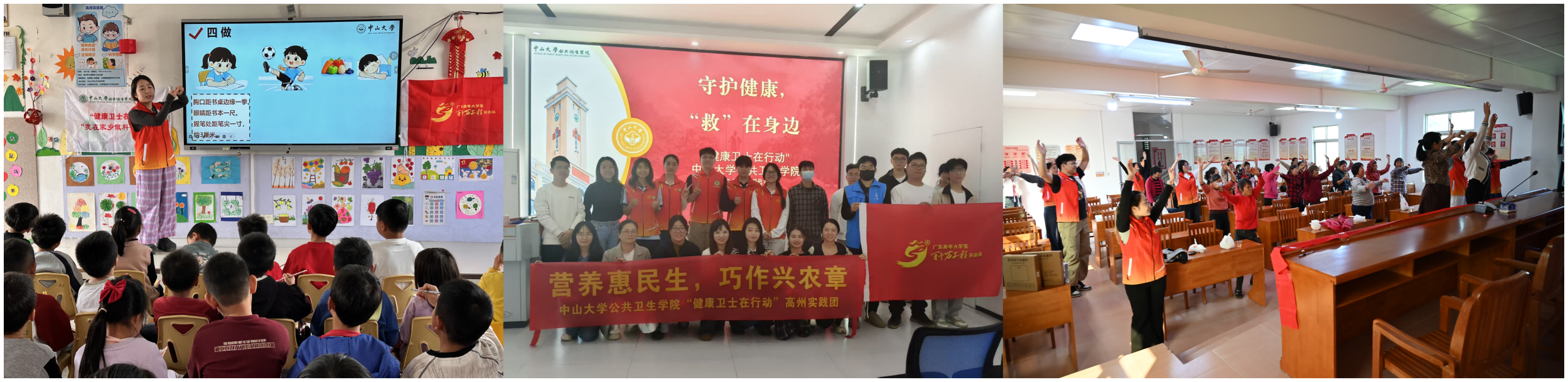 高州实践团以“营养惠民生,巧作兴农章”为主题,用一周的时间,实现科普服务与产业助力双线并行。团队在云潭镇揭牌社会实践基地,并面向幼儿、中青年、老年人开展了“明眸皓齿”、急救技能、“三高”防控等三场精准科普。同时,创新实践“健康+产业”融合,通过原创IP“潭仔”、助农短视频、营养科普漫画、直播助农及智慧农业调研等方式,为当地特色农产品推广赋能,探索青年学子助力乡村振兴的新路径。